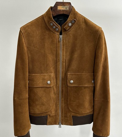 [홍콩명품.TOM FORD] 톰포드 26SS 로고 레더 가죽 봄버 자켓 (브라운), BM24330, TOM, 레플리카의류,미러급사이트 > 남자의류