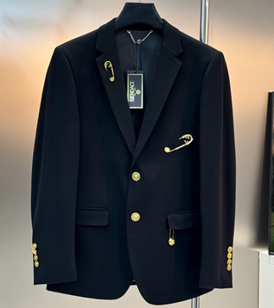 • [홍콩명품,FENDI] 펜디 26SS 로고 펜다체 핀 장식 정장 수트 자켓 (블랙), BM24355, 레플리카의류,미러급사이트
