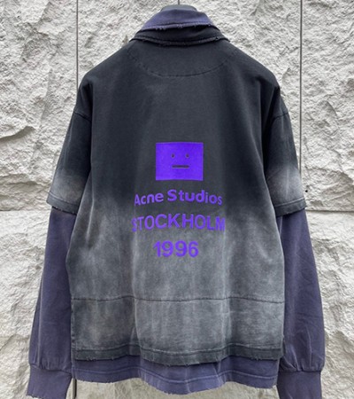 • [홍콩명품.ACNE STUDIO] 아크네스튜디오 26SS 로고 워싱 빈티지 3톤 카라 긴팔 티셔츠 (블랙), BM24405, 레플리카의류,미러급사이트