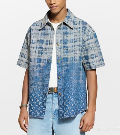 • [홍콩명품.LOUIS VUITTON] 루이비통 26SS 로고 모노그램 데님 반팔 남방 셔츠 1AJC88, BM24436, KB, 레플리카의류,미러급사이트