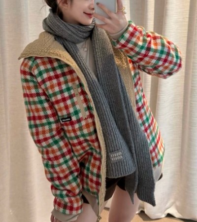 [홍콩명품,MIU MIU] 미우미우 26SS 로고 패턴 여성 캐시미어 집업 자켓 (카라멜), BM24463, JL, 레플리카의류,미러급사이트 요약정보 및 구매