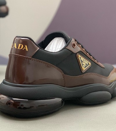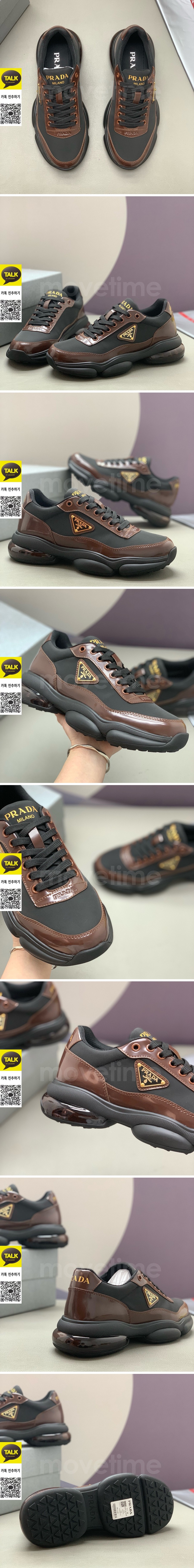 • [홍콩명품,PRADA] 프라다 26SS 삼각로고 레더 가죽 스니커즈 운동화 (블랙-브라운), SE6052, PMD, 명품스니커즈,운동화,구두,로퍼,하이탑,신발