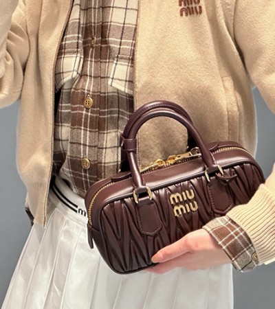 [홍콩명품,MIU MIU] 미우미우 26SS 로고 Arcadie Matelassé 레더 가죽 스몰 볼링백 (브라운), BGM5592, BC, 홍콩명품가방,명품쇼핑몰,크로스백,핸드백,구매대행 > 가방