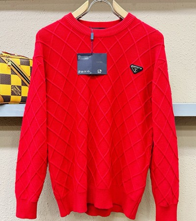 • [홍콩명품,PRADA] 프라다 26SS 삼각로고 캐시미어 니트 스웨터 (레드), BM24571, 레플리카의류,미러급사이트