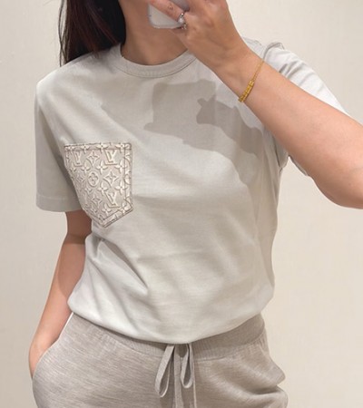 [홍콩명품.LOUIS VUITTON] 루이비통 26SS 로고 여성 모노그램 포켓 반팔 티셔츠 (그레이), BM24594, MC, 레플리카의류,미러급사이트 > 여성몰