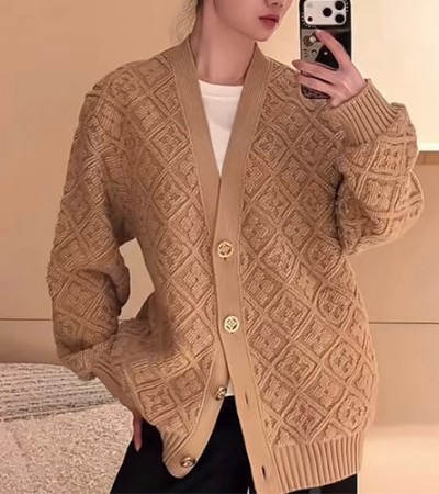 • [홍콩명품.LOUIS VUITTON] 루이비통 26SS 로고 여성 모노그램 V넥 니트 가디건 (카라멜), BM24604, KSM, 레플리카의류,미러급사이트