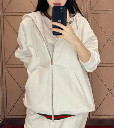 • [홍콩명품.Gucci] 구찌 26SS 로고 자수 후드 집업 자켓 (화이트), BM24720, KK, 레플리카의류,미러급사이트