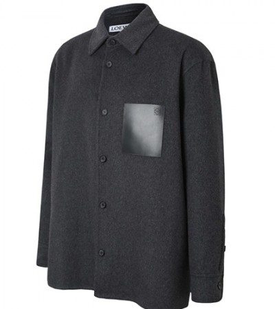• [홍콩명품.LOEWE] 로에베 26SS 로고 레더 포켓 울 남방 셔츠 (다크그레이), BM24799, KK, 레플리카의류,미러급사이트