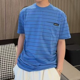 [홍콩명품.BALENCIAGA] 발렌시아가 25SS 로고 자수 반팔 티셔츠 (블루), BM22554, KB, 레플리카의류,미러급사이트