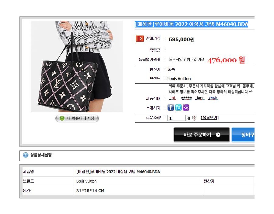 루이비통 2022 여성용 가방 M46040.BDA 요약정보 및 구매