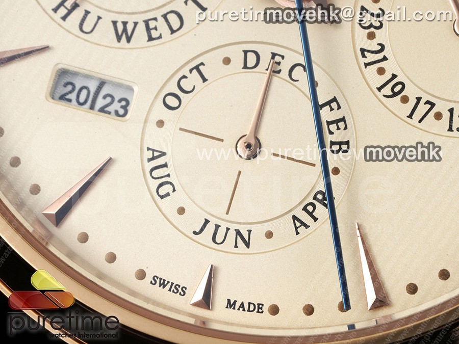 | Movement | Asian 23J automatic movement decorated to JLC 868 movement, Perpetual Calendar display |