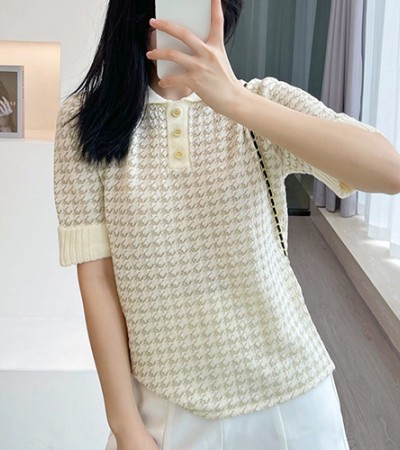 • [가격문의][홍콩명품.YSL] 입생로랑 23SS 로고 여성 슬림핏 카라 니트 반팔 티셔츠, BM6560, TBG, 홍콩명품쇼핑몰,인터넷명품,온라인명품사이트,해외명품,해외직구