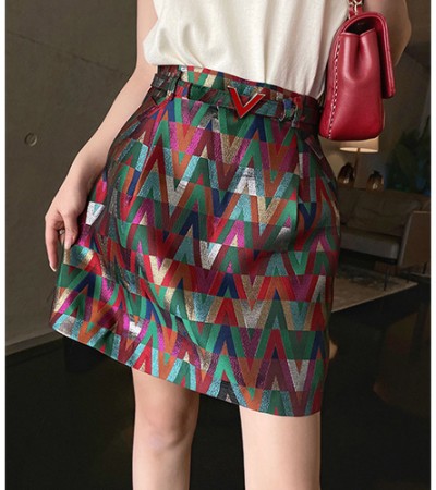 • [VALENTINO] 발렌티노 22SS 여성 모자이크 V패턴 금장V버클 벨트 스커트 WM374, W2, 홍콩명품,무브타임,여자명품의류,2022신상