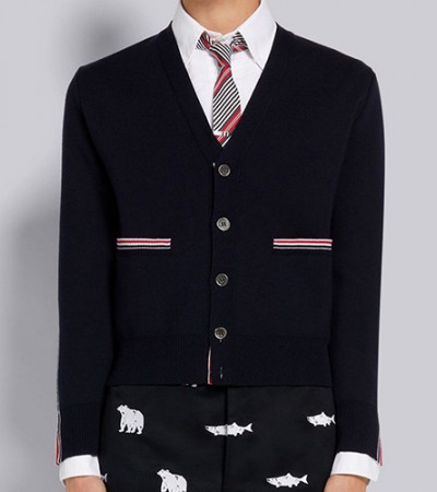 • [THOME BROWNE] 톰브라운 밀라노 22SS 브이넥 남성 가디건 MM365, TB1, 홍콩명품,무브타임,남자명품의류,2022신상