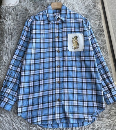[홍콩명품,BURBERRY] 버버리 22SS 연예인코디 여성용 문자로고 체크셔츠 블루 WM600, ST, 명품의류,무브타임사이트,인터넷명품쇼핑몰,여자명품 > 여성몰