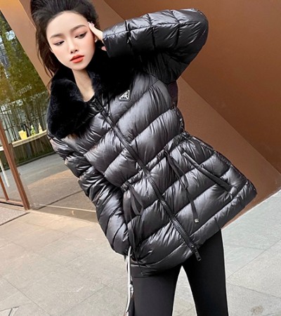 • [홍콩명품,PRADA] 프라다 23SS 삼각로고 여성 후드 벨티드 구스 다운 패딩 코트 자켓 (그레이), BM10958, KSM, 홍콩명품의류,구매대행,온라인명품