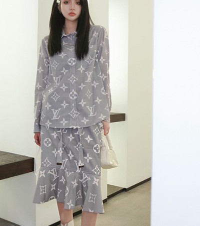 [홍콩명품.LOUIS VUITTON] 루이비통 인버티드 마히나 모노그램 매스큘린 셔츠 스커트 투피스, BM2574, TBG, 명품쇼핑몰,무브타임사이트,인터넷쇼핑몰,남자명품,해외직구 > 여성몰
