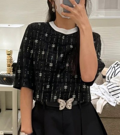 • [홍콩명품.CHANEL] 샤넬 22SS 스트라이프 코튼 숏 티셔츠 (블랙&화이트), BM3084, TBG, 명품쇼핑몰,의류,무브타임사이트,인터넷쇼핑몰,해외직구