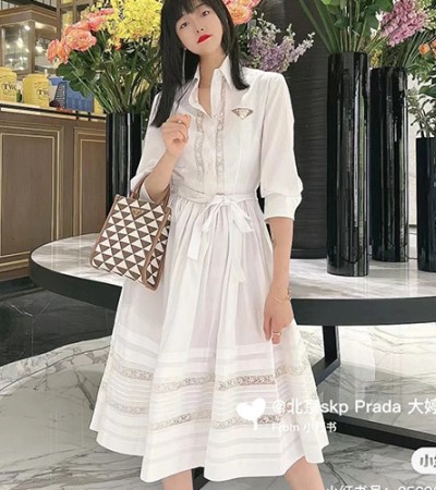 • [홍콩명품,PRADA] 프라다 23SS  레이스 인서트 삼각로고 포플린 셔츠 드레스 P3H89R, BM4842, TBG, 온라인명품쇼핑몰,의류,무브타임사이트,인터넷쇼핑몰,해외직구