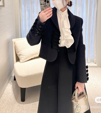 • [홍콩명품,Christian Dior] 디올 25SS 로고 여성 오블리크 머플러 장식 라운드넥 코트 자켓 (네이비), BM24149, MC, 레플리카의류,미러급사이트