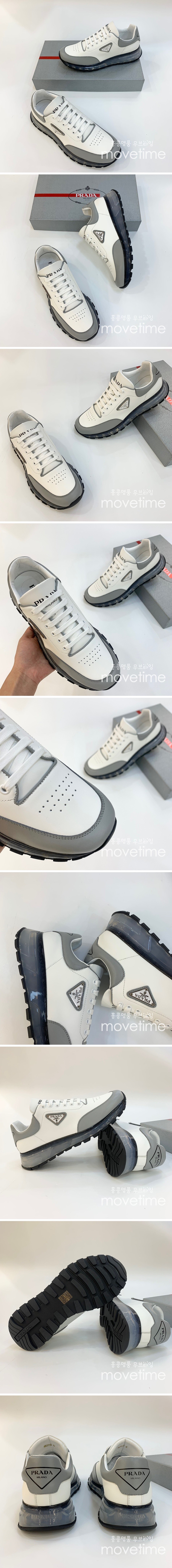 • [홍콩명품,PRADA] 프라다 23SS 프락스 스니커즈 (화이트-그레이), SE1270, PMD, 무브타임사이트,인터넷명품쇼핑몰,남자명품,슈즈,신발
