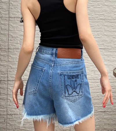 • [홍콩명품.LOEWE] 로에베 23SS 로고 자수 데님 미니 쇼츠 반바지, BM5746, BR, 홍콩명품쇼핑몰,인터넷명품,온라인명품사이트,여자명품,해외직구