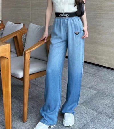• [홍콩명품,PRADA] 프라다 23SS 로고 밴딩 오버핏 데님 팬츠 진 청바지, BM5758, BR, 홍콩명품쇼핑몰,인터넷명품,온라인명품사이트,여자명품,해외직구