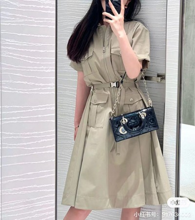 • [홍콩명품,Christian Dior] 디올 23SS 코튼 개버딘 벨트 드레스 원피스 (베이지) 327R14A3332, BM5996, TBG, 홍콩명품쇼핑몰,인터넷명품,온라인명품사이트,여자명품,해외직구
