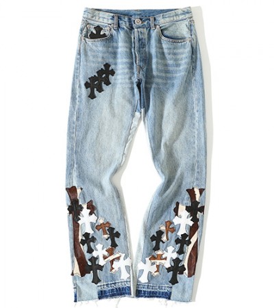 • [홍콩명품.Chrome Hearts] 크롬하츠 23SS 크로스 로고 데님 팬츠 진 청바지 (연청), BM6357, TT, 홍콩명품쇼핑몰,인터넷명품,온라인명품사이트,여자명품,해외직구