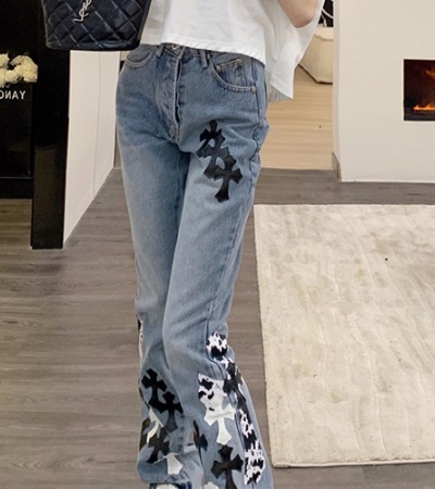 [홍콩명품.Chrome Hearts] 크롬하츠 23SS 크로스 레더 로고 데님 팬츠 진 청바지, BM6816, SG, 온라인명품쇼핑몰,남자명품의류,인터넷쇼핑몰,해외직구 > 여성몰