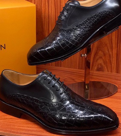 • [홍콩명품.LOUIS VUITTON] 루이비통 23SS 로고 악어가죽 정장 구두 (블랙), SE1771, S1, 무브타임사이트,인터넷명품쇼핑몰,남자명품,슈즈,신발