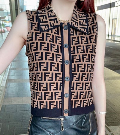 [홍콩명품,FENDI] 펜디 23SS FF패턴 슬리브리스 카라 니트 가디건, BM7108, TBG, 온라인명품쇼핑몰,남자명품의류,인터넷쇼핑몰,해외직구 > 여성몰