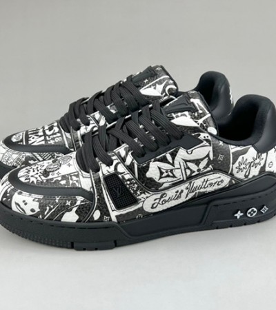 • [홍콩명품.LOUIS VUITTON] 루이비통 23SS 그래픽 프린트 트레이너 스니커즈 (블랙), SE1831, S3, 무브타임사이트,인터넷명품쇼핑몰,남자명품,슈즈,신발