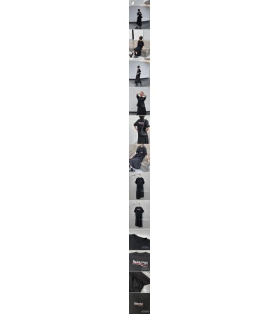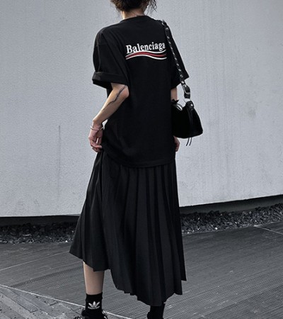• [홍콩명품.BALENCIAGA] 발렌시아가 23SS 웨이브로고 반팔 티셔츠 미디스커트 2블럭 원피스, BM7678, BR, 온라인명품쇼핑몰,남자명품의류,인터넷쇼핑몰,해외직구