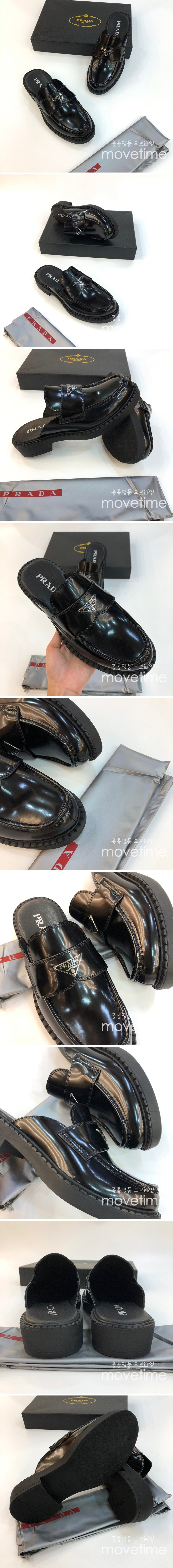 [홍콩명품,PRADA] 프라다 23SS 삼각로고 가죽 슬리퍼 로퍼 뮬 (블랙), SE1914, PMD, 무브타임사이트,인터넷명품쇼핑몰,남자명품,슈즈,신발 요약정보 및 구매