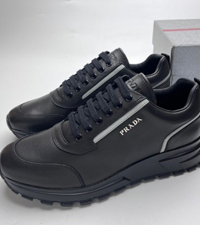 [홍콩명품,PRADA] 프라다 23SS 로고 레더 스니커즈 (올블랙), SE1966, PMD, 무브타임사이트,인터넷명품쇼핑몰,남자명품,슈즈,신발 > 신발