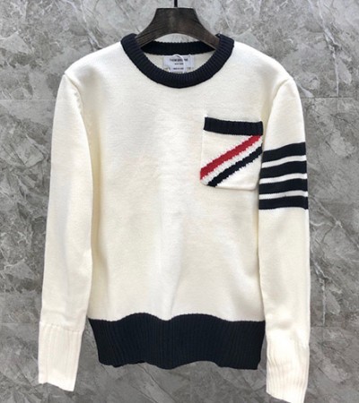 [홍콩명품.THOME BROWNE] 톰브라운 23SS 로고 4바 니트 스웨터 (화이트), BM9344, TB1, 온라인명품쇼핑몰,남자명품의류,인터넷쇼핑몰,해외직구 > 남자의류
