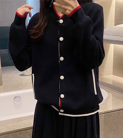 [홍콩명품.THOME BROWNE] 톰브라운 23SS 로고 3선 울 봄버 자켓 (네이비), BM9348, TB1, 온라인명품쇼핑몰,남자명품의류,인터넷쇼핑몰,해외직구 > 여성몰