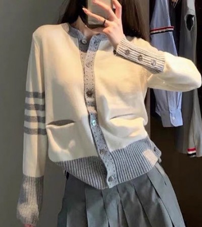 [홍콩명품.THOME BROWNE] 톰브라운 23SS 로고 4바 라운드넥 니트 가디건 (화이트), BM9359, TB1, 온라인명품쇼핑몰,남자명품의류,인터넷쇼핑몰,해외직구 > 여성몰