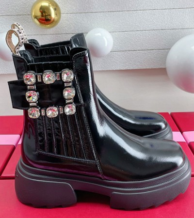 [홍콩명품,Roger Vivier] 로저비비에 23SS 로고 다이아 장식 5cm굽 가죽 워커 부츠 (블랙), SE2060, SMS, 무브타임사이트,인터넷명품쇼핑몰,남자명품,슈즈,신발 > 여성몰