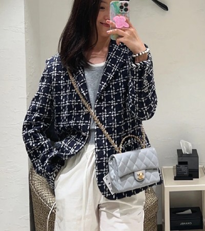 • [홍콩명품.CHANEL] 샤넬 23SS 로고 체크패턴 트위드 자켓, BM9921, PG, 온라인명품쇼핑몰,남자명품의류,인터넷쇼핑몰,해외직구