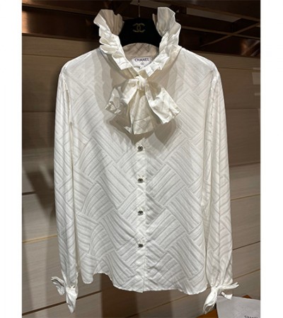 • [홍콩명품.CHANEL] 샤넬 23SS 로고 리본 장식 블라우스 셔츠 (2컬러), BM9922, PG, 온라인명품쇼핑몰,남자명품의류,인터넷쇼핑몰,해외직구