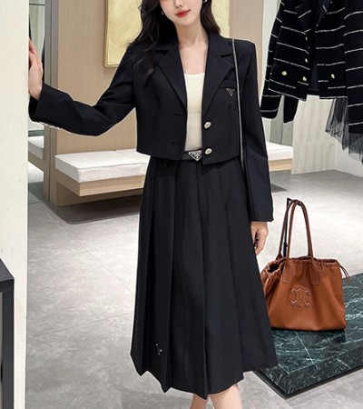 • [홍콩명품,PRADA] 프라다 23SS 삼각로고 쇼트 자켓 + 미디 스커트 상하의 세트 (블랙), BM10267, TBG, 홍콩명품가방,명품쇼핑몰,크로스백,핸드백,구매대행,무브타임