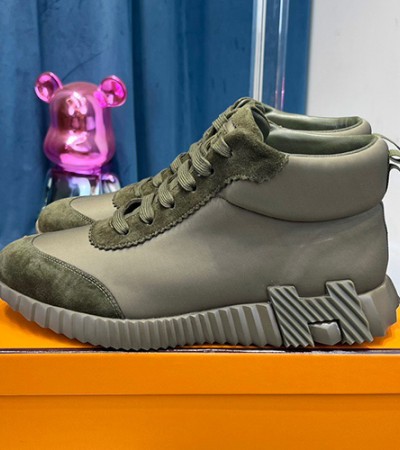 • [홍콩명품.Hermes] 에르메스 23SS 로고 Eclair 남성 가죽 하이탑 스니커즈 (카키), SE2220, 홍콩명품쇼핑몰,무브타임,악세사리,잡화,생활용품