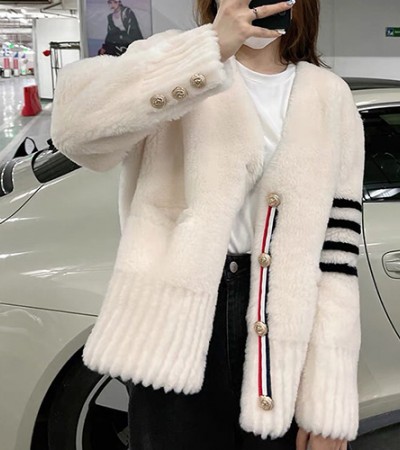 [홍콩명품.THOME BROWNE] 톰브라운 23SS 로고 여성 4바 V넥 퍼 가디건 자켓 (2컬러), BM10578, TB1, 홍콩명품의류,구매대행,온라인명품 요약정보 및 구매