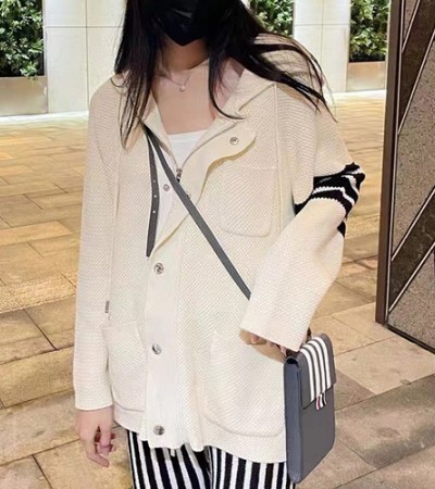 • [홍콩명품.THOME BROWNE] 톰브라운 23SS 로고 4바 후드 니트 스웨터 자켓 (3컬러), BM10581, TB1, 홍콩명품의류,구매대행,온라인명품