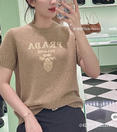 [홍콩명품,PRADA] 프라다 23SS 로고 여성 니트 반팔 티셔츠 (2컬러), BM10957, KSM, 홍콩명품의류,구매대행,온라인명품 요약정보 및 구매