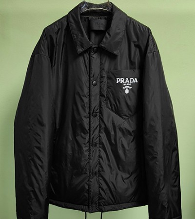 [홍콩명품,PRADA] 프라다 23SS 로고 프린트 솜패딩 버튼 자켓 (블랙), BM11163, JL, 홍콩명품의류,구매대행,온라인명품 > 남자의류