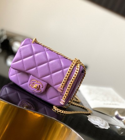 • [홍콩명품.CHANEL] 샤넬 23SS 미니 플랩백 명품 이너백 백인백 샤넬 램스킨 체인 시즌백 AS3113 (퍼플), BGM2291, GU3, 홍콩명품가방,명품쇼핑몰,크로스백,핸드백,구매대행,무브타임