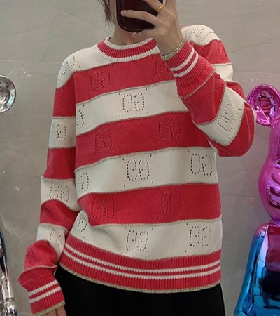 [홍콩명품.Gucci] 구찌 23SS 로고 스트라이프 니트 스웨터 (핑크), BM11268, TBG, 홍콩명품의류,구매대행,온라인명품 > 여성몰